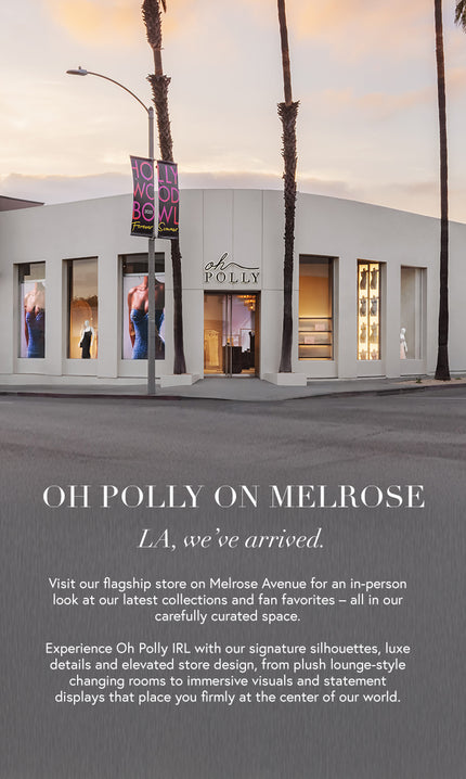 Visit our flagship store on Melrose Avenue for an in-person look at our latest collections and fan favorites. Experience Oh Polly IRL with signature women's clothing, luxe details, and elevated store design, from plush lounge-style changing rooms to immersive visuals that place you firmly at the center of our world.