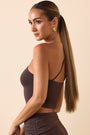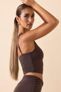 • Oh Polly's Priscilla wearing the Andi Crop Top in Chocolate Brown Modal fabric perfect for brunch with friends