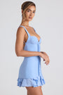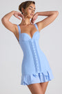 • Ruffle-Trim Button-Detail Corset Mini Dress in Sky Blue