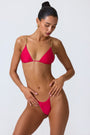 • Chain-Embellished Triangle Bikini Top in Raspberry Pink