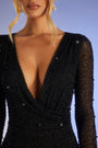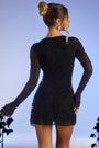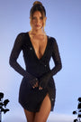 • Oh Polly's Sierra Skye wearing the Chelsea Mini Dress in Black Embellished fabric perfect for date night