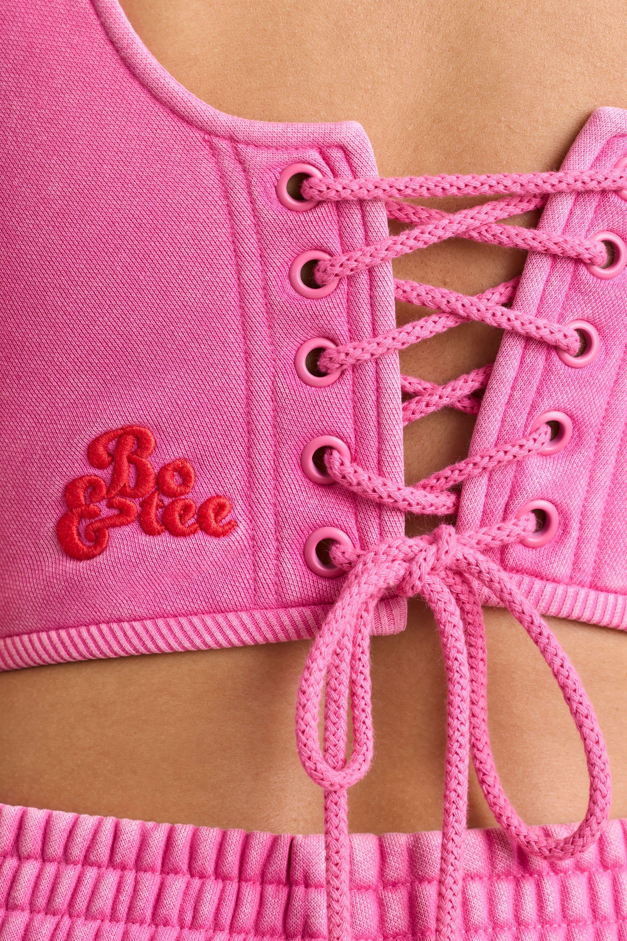 • Brushed Jersey Corset Crop Top in Hot Pink