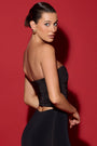 • Premium Jersey Strapless Plunge Neck Top in Black