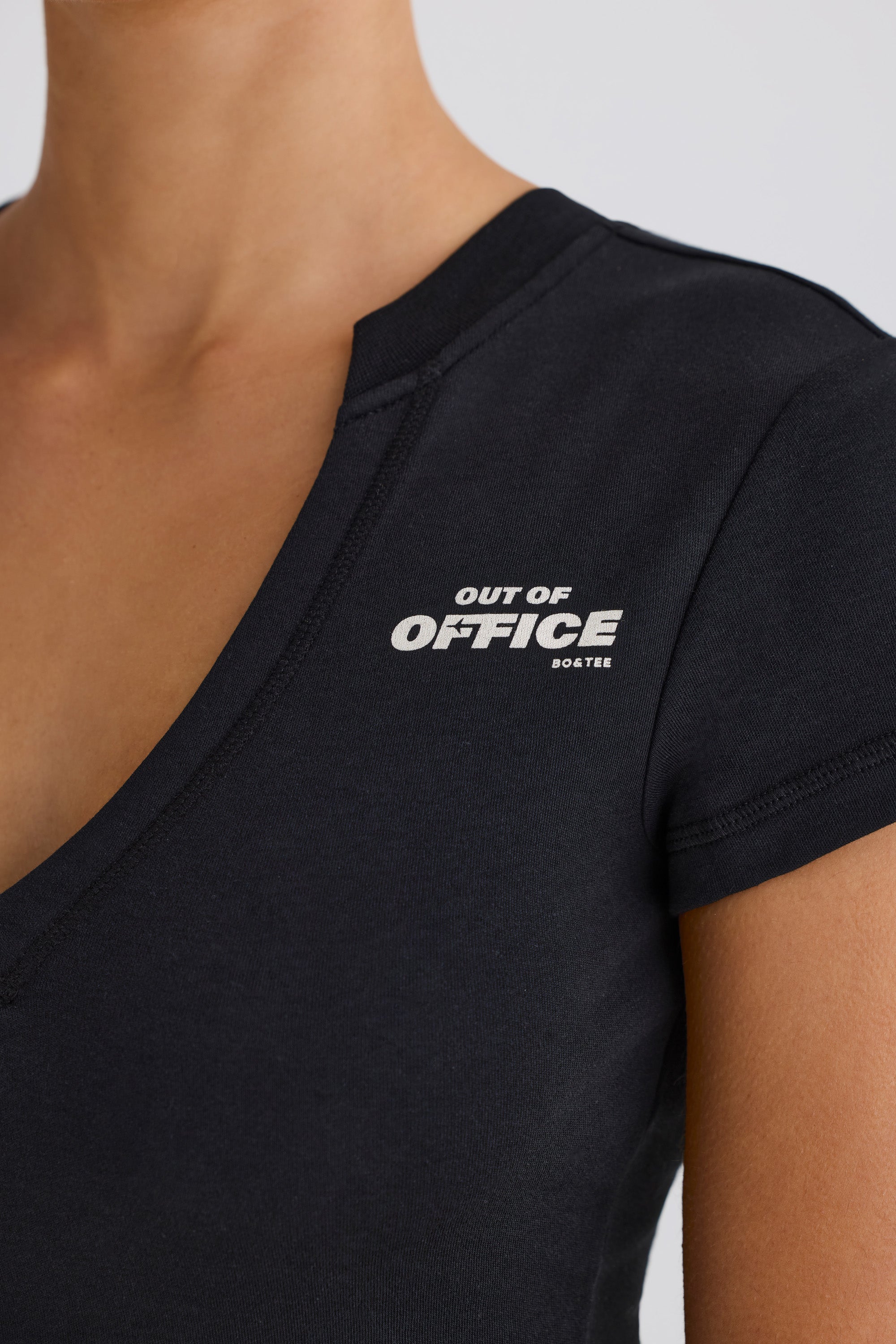 Stretch Cotton Jersey Graphic Print Cropped T-Shirt in Black