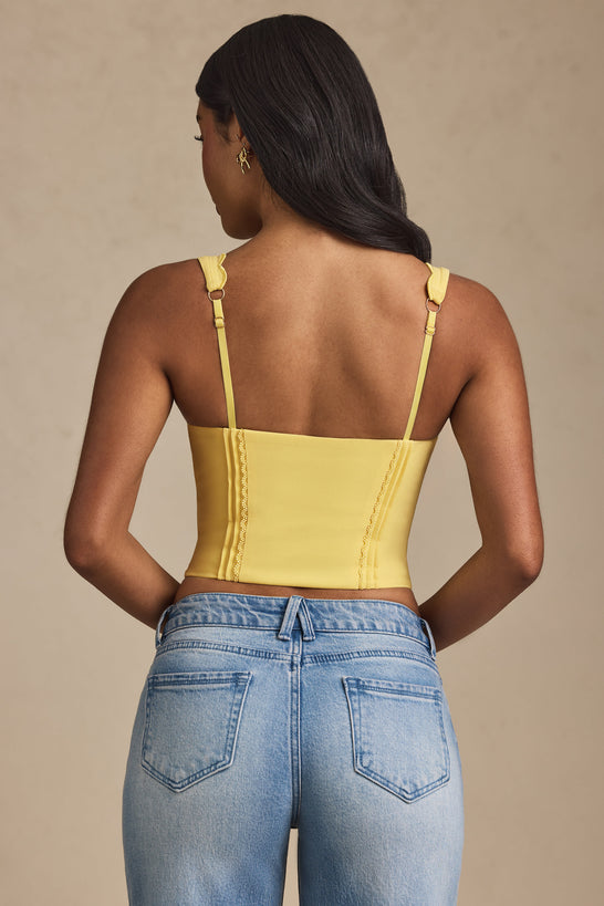 • Plunge-Neck Scalloped Corset Top in Pastel Yellow