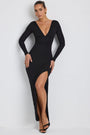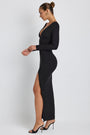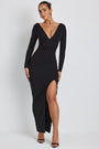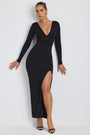 • Modal Plunge Neck Long Sleeve Maxi Dress in Black