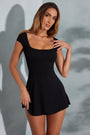 Open Back A-Line Mini Dress in Black