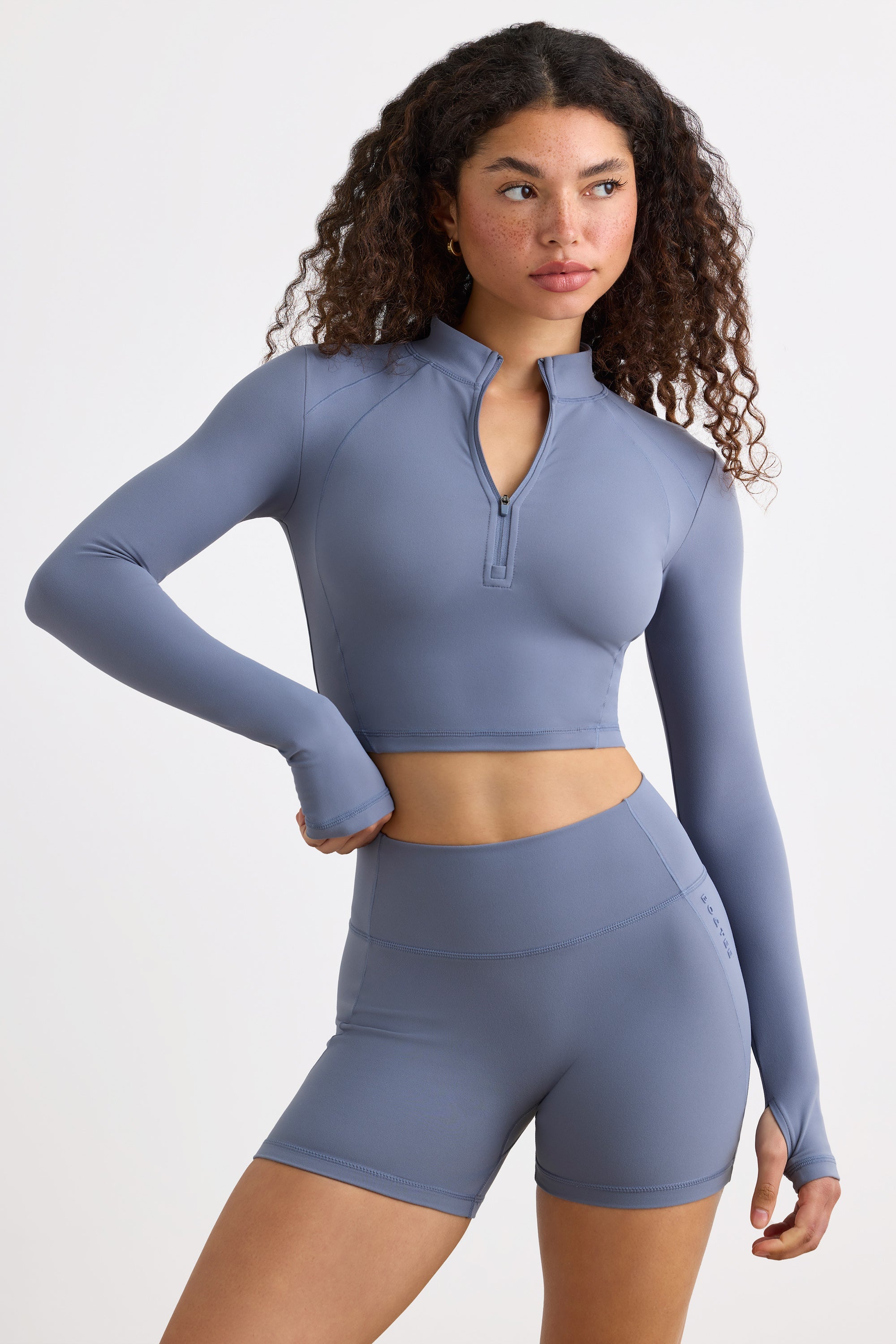 Soft Active High Waist Mini Shorts in Slate Grey