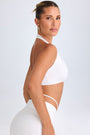 • Plunge Hardware-Detail Halterneck Crop Top in White